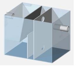 Жироуловитель предназначен для защиты труб канализации от жировых отложений и засоров. Жироуловители отделяют жир, содержащийся в воде,который всплывает в зоне накопления и находится там до его удаления вместе с твердыми отходами,которые оседают на дно. Работа жироотделителя основана на разнице в плотности воды и жира, при резком снижении скорости потока жидкости и температуры,жир плавает на поверхности в емкости жироотделителя. Жироуловитель обладает длительным сроком службы, материал, из которого он изготовлен полипропилен, устойчив к воздействию агрессивных сред и отличается высокой прочностью.